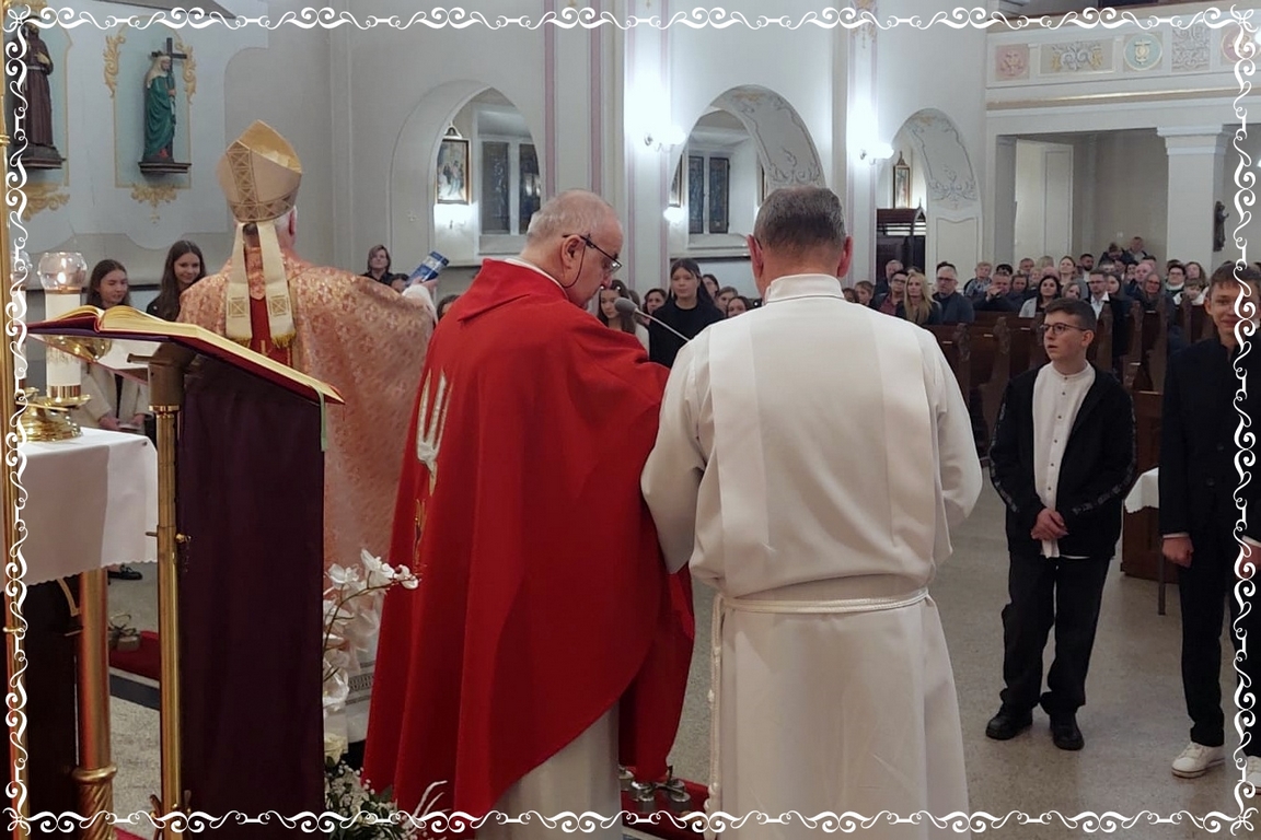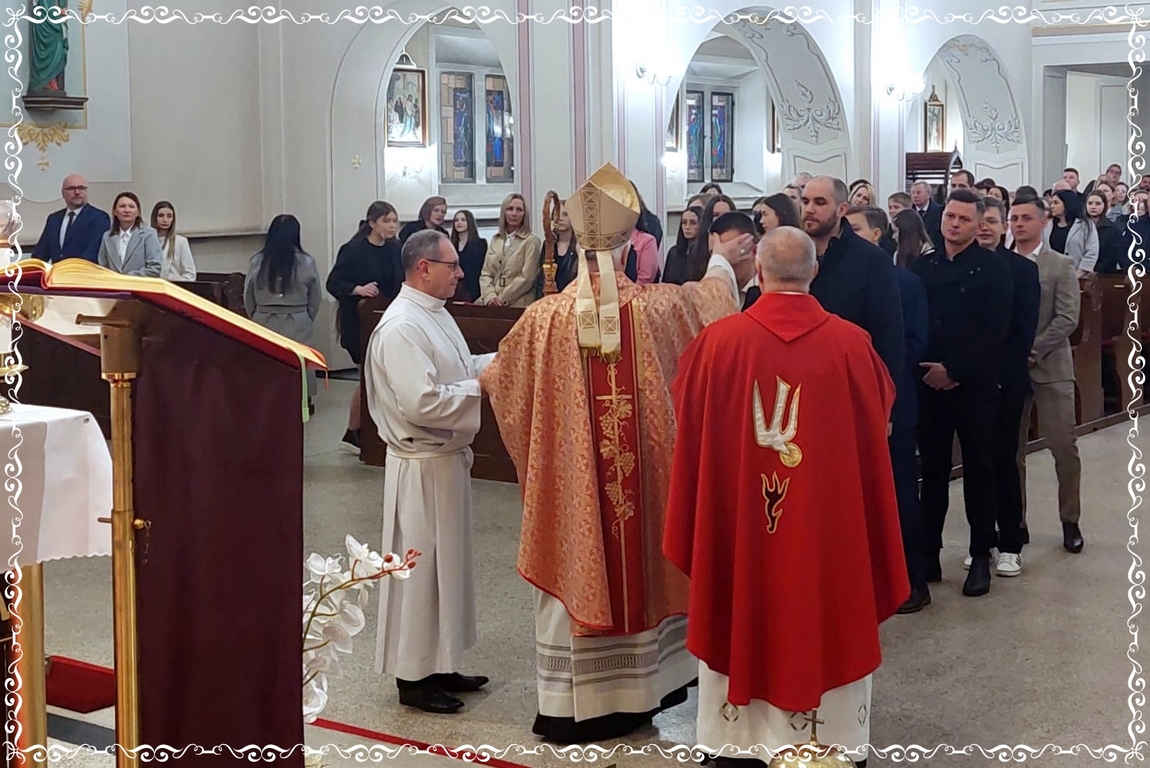 Msza św. z udzieleniem Sakramentu Bierzmowania uczniom klasy VIII sprawowana pod przewodnictwem Ks. Biskupa Marka Szkudło, Administratora naszej Archidiecezji. - 02.04.2025